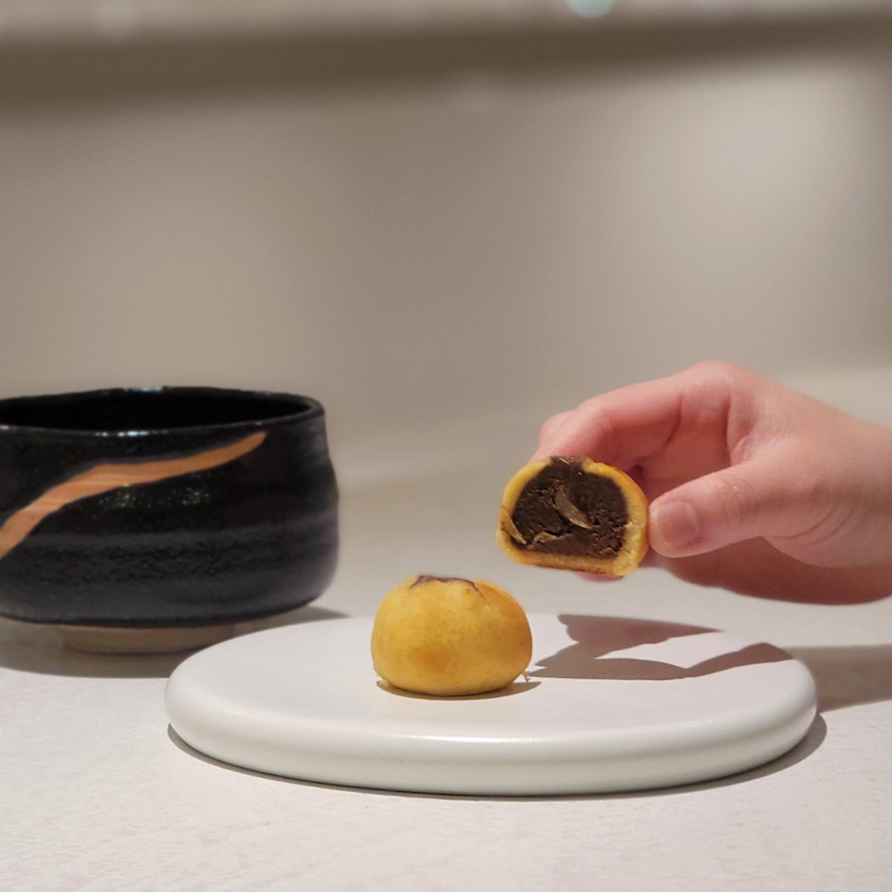 台湾の 幻の香辛料 とも呼ばれる馬告を、ほうじ茶餡に。スパイスを噛み締めた瞬間、レモングラスや山椒を思わせる 爽やかな香りが広がります。